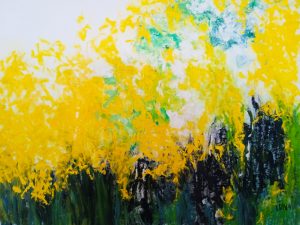 Serie "Naturaleza Viva". (Jardín II) Técnica mixta s/telas recicladas (56 x 60 cm) 2022